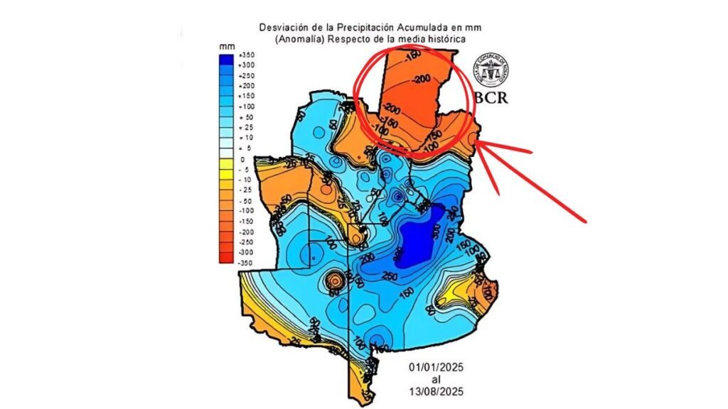 Un reciente informe de la Guía Estratégica para el Agro (GEA), de la Bolsa de Comercio de Rosario, había mostrado la diferencia entre el centro sur santafesino —donde las lluvias atípicas de julio dejaron acumulados anuales por encima de la media— y el centro norte, donde persistían déficits de entre 100 y 200 milímetros.