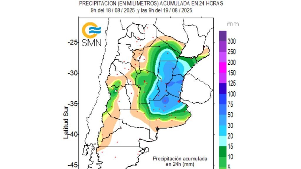 El centro norte de la provincia de Santa Fe recibió este martes 19 de agosto un aporte significativo de lluvias que trajo alivio a una región que venía acumulando un marcado déficit respecto de la media histórica.