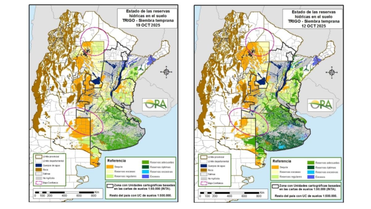 El pronóstico de La Niña anticipa condiciones de sequía en diversas regiones del país. El informe de la Oficina de Riesgo Agropecuario (ORA) detalla cómo las reservas de agua en el suelo están distribuidas en varias zonas agrícolas clave, lo que impacta directamente en los cultivos de trigo, maíz y girasol.