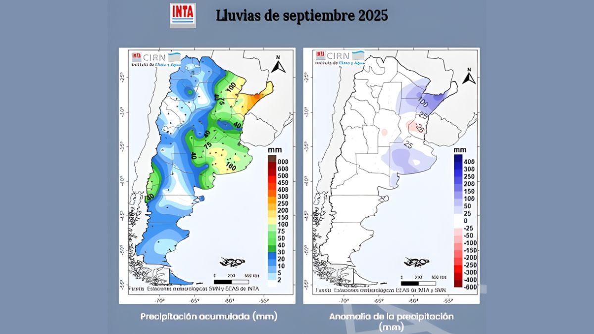 En contraste, el resto del país transita condiciones hídricas óptimas para la producción. El documento resalta que “la producción agropecuaria se desarrolla con condiciones hídricas cercanas al óptimo”, un escenario que coincide con el reporte de precipitaciones de septiembre del INTA, donde se detalló que “las precipitaciones se concentraron sobre el noreste y centro del país, con acumulados que en algunos sectores superaron los 100 mm”.