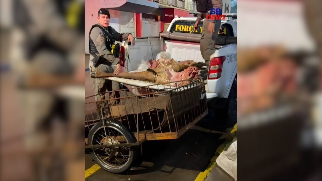 En el video difundido por el medio local se observa a los uniformados trasladando los animales faenados, mientras el cronista explicaba que “la carne es vendida al público”. También informó que, según la policía brasileña, el abigeato “se intensificó entre fines de agosto y principios de septiembre” y que las investigaciones alcanzan también a los compradores de esa mercadería.