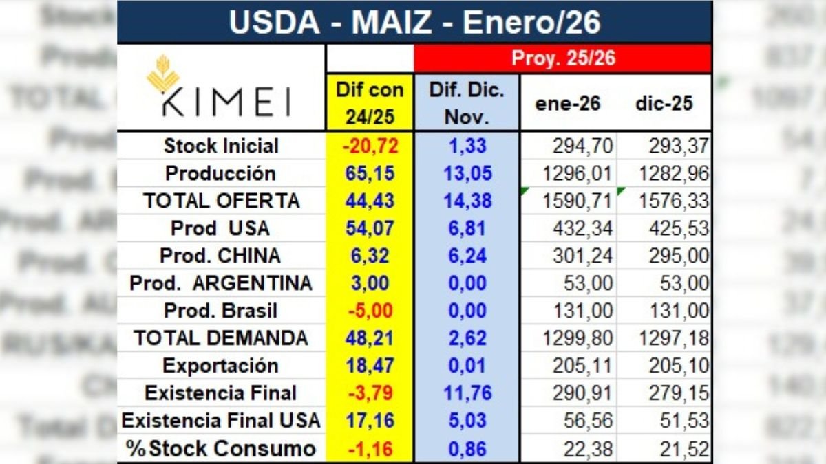 El mercado agrícola arrancó el año con una sorpresa. El primer informe mensual del USDA de 2026 introdujo cambios que no estaban en el radar de los operadores y que tuvieron un claro sesgo bajista en los precios.