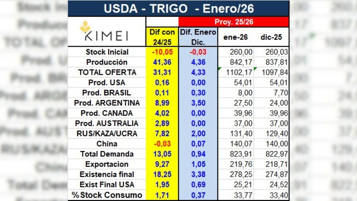 En conjunto, el informe de enero dejó un mensaje claro: la oferta global de granos luce más holgada de lo que descontaba el mercado. La sorpresa negativa frente a las expectativas previas se tradujo en una reacción inmediata de precios a la baja, en un contexto donde la atención seguirá puesta en la evolución de la demanda y en el clima sudamericano para los próximos meses.