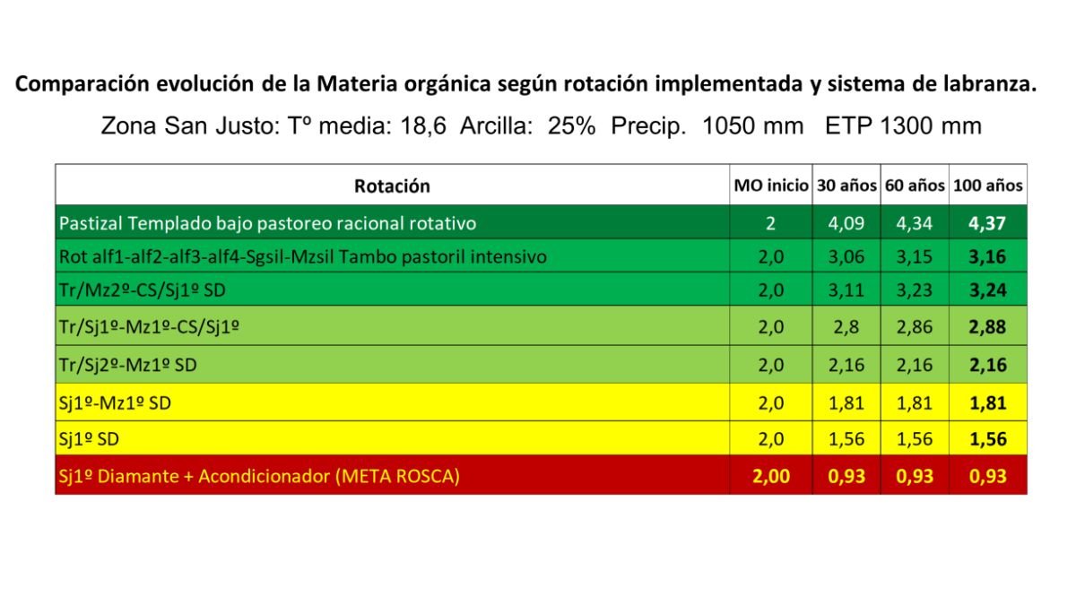- El monocultivo de soja, incluso en siembra directa, descendió hasta 1,56% en 100 años.