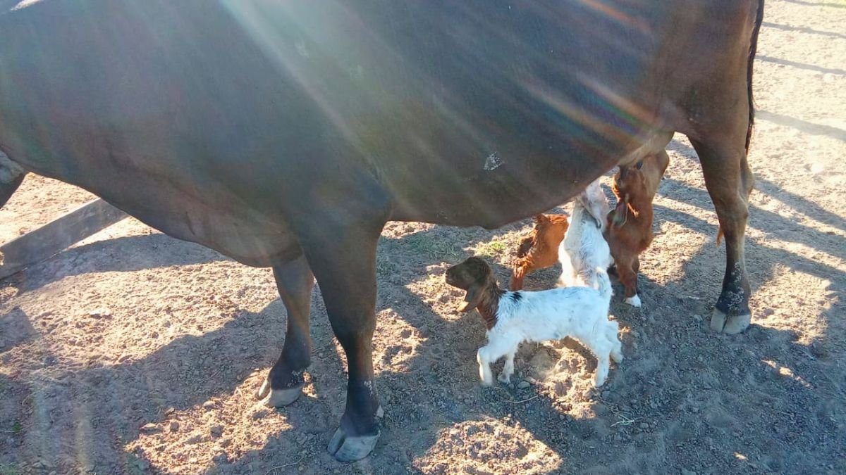 “La verdad es que nunca había visto algo así, y otra gente me dice lo mismo, que nunca se vio algo igual”, relató a AIRE Agro el trabajador, quien el año pasado encontró en esta vaca Jersey de dos años una solución práctica para optimizar el manejo de su majada de chivos Boer.