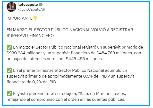Reflexionemos sobre todas las dimensiones involucradas en una política económica antes de hablar demás y agradezcamos contar con superávit primario (¡y también financiero!) gracias a los derechos de exportación, sin los cuales la inflación sería del 30% en lugar de 3,4%. No bajemos los brazos ¡Viva la libertad, carajo!