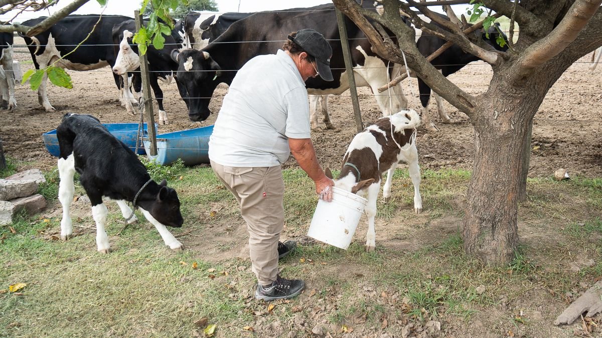 La rutina de cada jornada empieza cerca de las cinco de la mañana con el primer ordeñe. Después llegan el lavado, la atención de los terneros en la guachera y las tareas del campo: trasladar rollos, correr boyeros eléctricos, controlar los animales para evitar empastes. Por la tarde, tras un breve descanso, todo vuelve a empezar con el segundo ordeñe. “Y después siempre hay algo por hacer”, dice.