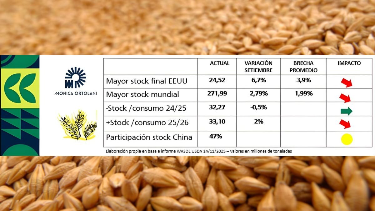 Si bien no hay variaciones significativas en la existencia mundial final ni en la relación stock/consumo, Chicago registró bajas de U$S 4/t en las posiciones hasta julio 2026.