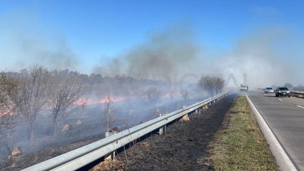 Sobre el tránsito trabaja personal de la Policía de Seguridad Vial, quienes implementaron una reducción de calzada y solicitaron precaución para circular por la gran cantidad de humo que afecta a la visibilidad.