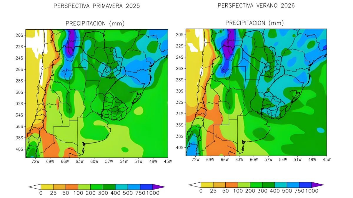 Para el verano de 2026, el régimen de lluvias se mantendría en valores históricos, con contrastes regionales: excesos en el norte y déficit en el sudoeste bonaerense.