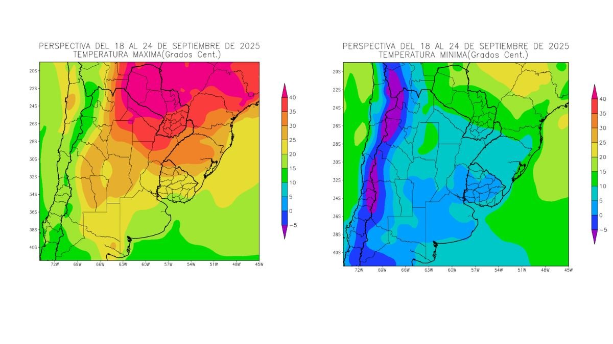 En el resto del país, el informe prevé precipitaciones escasas a nulas en el oeste de Cuyo, el NOA y el norte de la Región del Chaco, donde predominará el tiempo seco. Hacia el extremo norte, las temperaturas máximas superarán los 35 °C e incluso podrían alcanzar los 40 °C, generando focos de calor intenso.